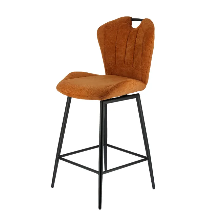 Le tabouret snack Sacha est la symbiose parfaite entre l’élégance rétro et le confort moderne. Cette création qui transcende les époques trouvera facilement place dans tous les intérieurs puisqu’elle se décline en plusieurs coloris. Ses rainures délicates sculptent son dossier, tandis que son assise généreusement rembourrée, protégée par des renforts latéraux, promet un accueil chaleureux et ergonomique. Revêtu d’un tissu et doté d’une poignée élégamment intégrée, le tabouret snack Sacha offre également une grande mobilité puisqu’il dispose d’une assise pivotante à 180° avec retour automatique qui facilite chaque entrée et sortie de table. Ses quatre pieds fuselés en métal insufflent, quant à eux, une stabilité remarquable. Le tabouret Sacha s’associera élégamment auprès d’une table haute d’environ 90 cm de haut.