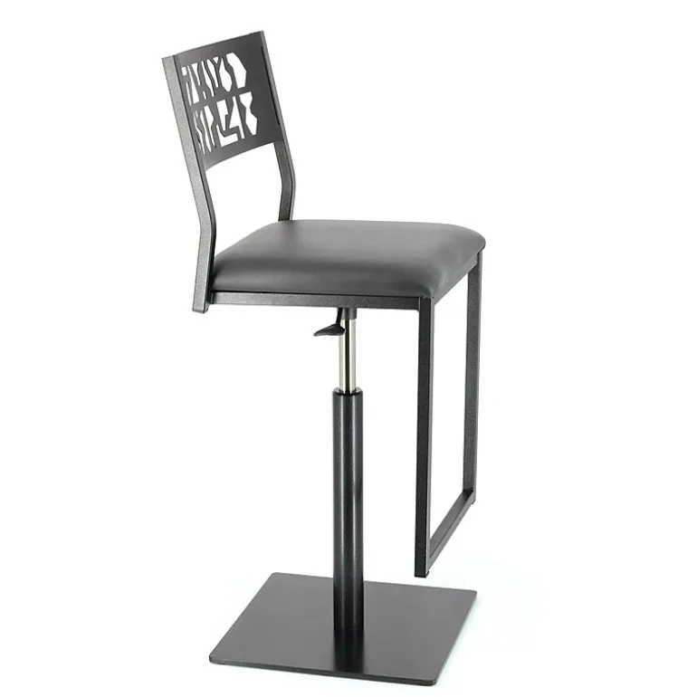 Ce tabouret réglable est le fruit du travail d’une entreprise française spécialisée dans la conception et la production de mobilier en métal. Le savoir-faire français garantit la qualité et la longévité du produit. Ce dernier se compose d’une structure carrée en métal de 20 mm de section et d’une assise en mousse recouverte de synthétique. On aime son motif sur son dossier qui est découpé au laser. Ce produit vous laisse une grande liberté de mouvement grâce à son caractère pivotant et sa hauteur réglable. La hauteur d’assise peut être réglée de 53 à 78 cm ce qui lui permet d’accompagner les tables snack ou de bar (hauteur 90 cm ou 110 cm). A noter qu’une protection pour repose-pieds en inox est disponible en option.