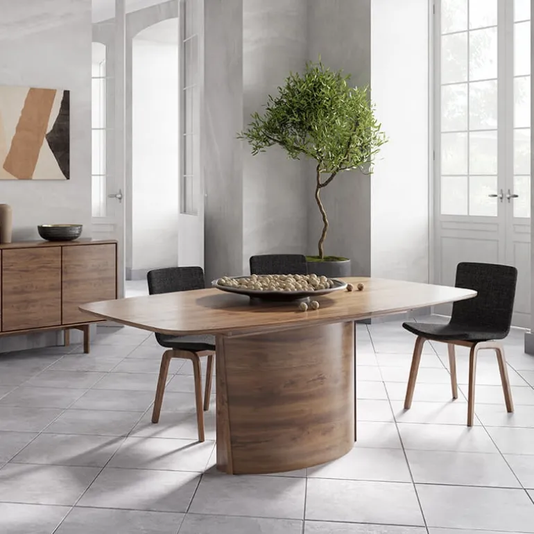 La table scandinave pied central SM116-117 est entièrement conçue en placage bois pour un rendu authentique et convivial. Côté style, elle se démarque grâce à son pied central imposant qui lui apporte beaucoup de cachet et une bonne stabilité. Jouant avec les codes du style scandinave, cette table arbore des contours avec de jolies rondeurs aussi bien au niveau de son pied que de son plateau. Ce dernier est un plateau tonneau, arrondi dans les coins apportant ainsi du galbe et de la douceur. Mais cette table danoise n’est pas seulement esthétique, elle est aussi très pratique. En effet, elle est dotée d’un système d’ouverture synchronisé et breveté qui vous permettra d’accueillir des convives supplémentaires avec facilité grâce à l’allonge dissimulée sous le plateau. Si vous êtes à la recherche d’une table à manger scandinave qui sorte de l’ordinaire sans sacrifier le côté pratique, la table extensible SM116-117 est toute trouvée !