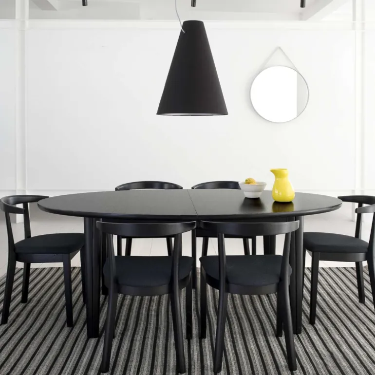 Elégance et qualité sont les maitres-mots de la table en bois avec allonges SM78. Conçue avec un plateau ovale en placage bois et une structure en bois massif elle saura jouer de sa douceur et de sa jolie silhouette pour intégrer votre séjour. Point de vue praticité, la table salle à manger ovale en bois SM78 possède 2 allonges amovibles rangées sous le plateau. Pour ouvrir la table, il suffit de tirer sur l’un des bouts du plateau. Lors de l’ouverture les pieds se dédoublent afin de parfaire l’équilibre de la table. Une fois le plateau ouvert, retirez manuellement les allonges cachées sous le plateau, installez-les puis refermez le plateau. A noter que ce produit dispose de 2 allonges supplémentaires optionnelles en placage bois qui ne correspondent pas au bois du plateau contrairement aux 2 autres disponibles dans la version de base.