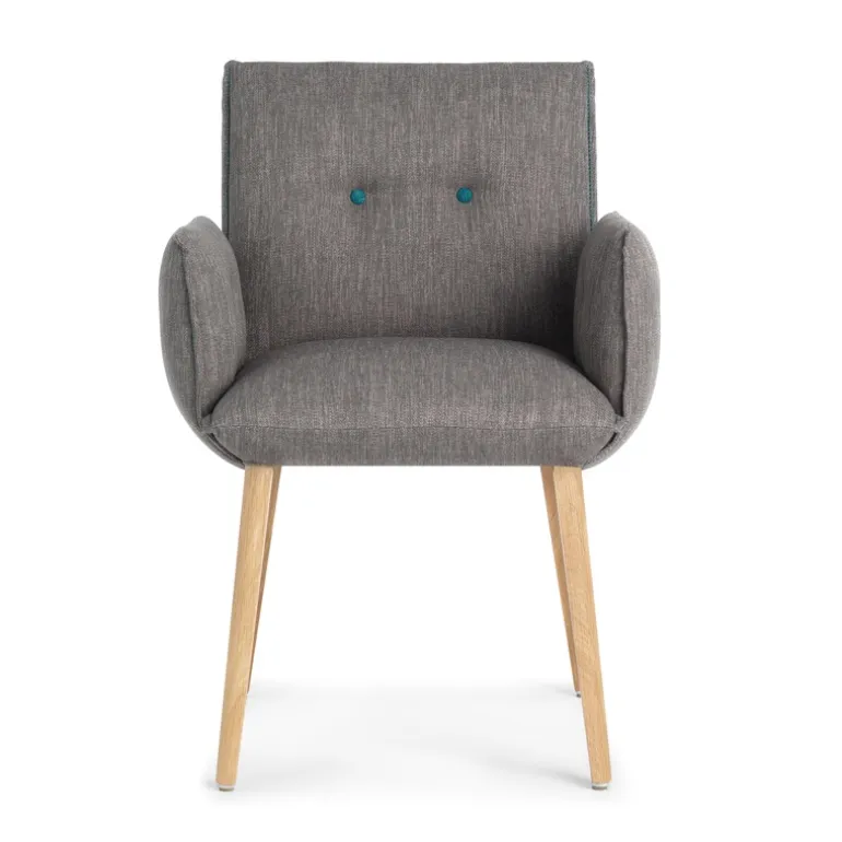 Le fauteuil cocooning Soda ne laisse personne indifférent ! On aime sa douceur ainsi que son confort souligné par la mousse utilisée et ses ressorts Nosag dissimulés dans l’assise qui lui offrent une bonne élasticité et un excellent soutien. Le mélange du bois et du tissu lui permet d’intégrer avec douceur votre décoration intérieure. Son style atypique renforcé par les deux boutons décoratifs présents sur le dossier mais également les surîqûres latérales plaira à tous vos invités. Placé dans un séjour, une chambre ou un bureau, ce fauteuil deviendra un élément central de votre pièce ! Ce produit fabriqué en Europe par la marque belge Mobitec est une invitation à la détente.