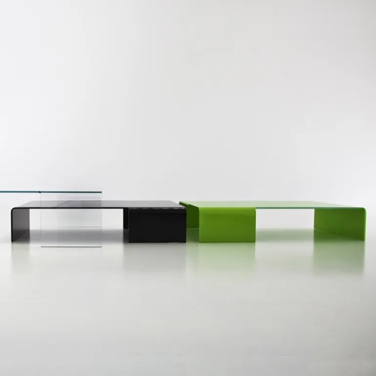 Créée dans un unique morceau de verre de 12 mm d’épaisseur, découpé et recourbé, la table basse rectangulaire Spider est une table originale qui ne laissera personne indifférent. En effet, la délicatesse de son verre et sa silhouette moderne apporteront assurément une touche design à votre intérieur et subjugueront vos invités. Disponible en verre transparent, fumé ou laqué, elle se décline également en 2 hauteurs (24 cm et 36 cm). Enfin, atout non négligeable, cette table basse en verre dispose de plusieurs coloris afin de s’adapter à son environnement. L’extérieur et l’intérieur étant du même coloris. A noter que l’option bicolore est disponible uniquement sur devis.