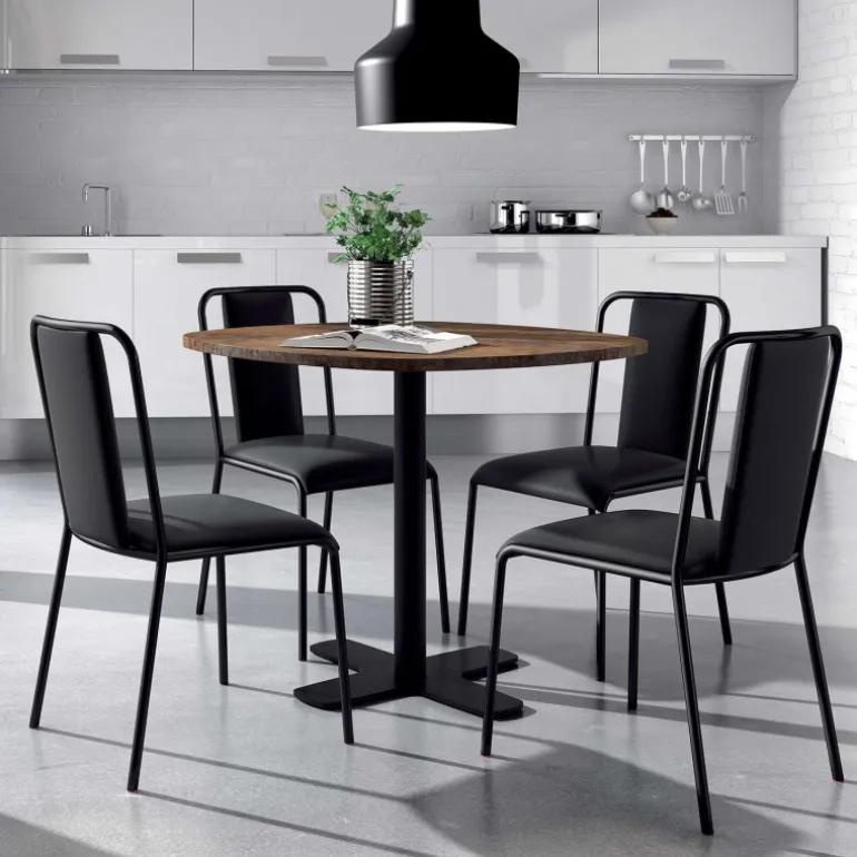 La table ronde de cuisine Spinner associe un plateau en stratifié à un pied central en métal de 70 mm de diamètre avec une base en croix de 59 x 59 cm. Ces éléments sont disponibles en plusieurs coloris afin de trouver place dans toutes les décorations. C’est donc à vous de créer la combinaison idéale pour faire de votre table ronde un élément phare de votre déco. A noter que les matériaux utilisés facilitent l’entretien de la table, ce qui est très utile dans une cuisine ! Pour un look encore plus authentique, optez pour le stratifié HA texturé !
