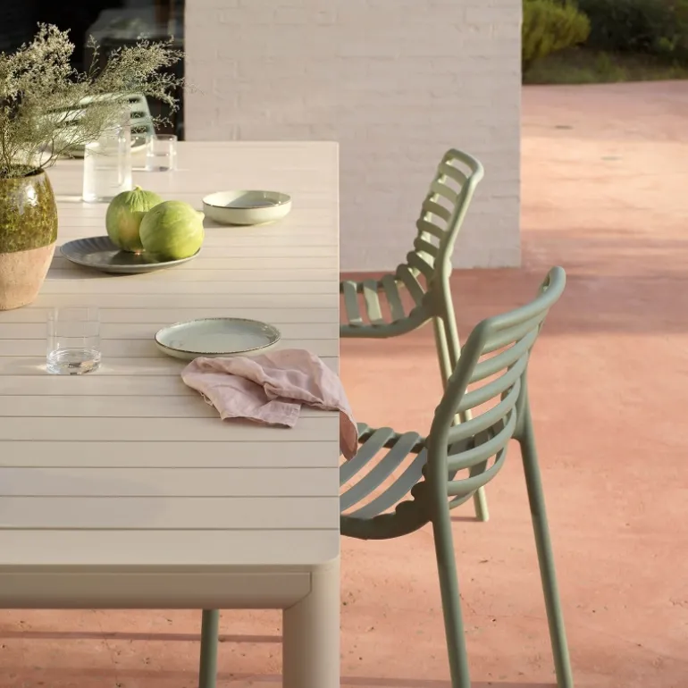 L’âme écologique de la table d’extérieur Tevere est certainement son atout principal. Elle est composée d’une structure en aluminium recyclé au fini verni ainsi que d’un plateau en polypropylène renforcé par de la fibre de verre au fini mat. Avec Tevere, la convivialité sera au rendez-vous au sein de votre jardin. Son plateau extensible vous permettra de recevoir vos amis et votre famille autour de délicieux repas estivaux. Vous allez aimer le style sobre et élégant de cette fabrication italienne composée d’un plateau à lattes. Certifiée CATAS, Tevere est colorée dans la masse et traitée anti-UV, gage de qualité. Notez que le coloris Terra s’inspire directement de la couleur naturelle de la terre, vous pourrez observer diverses nuances de brun. Cela s’explique par sa composition unique qui réutilise du polypropylène recyclé.