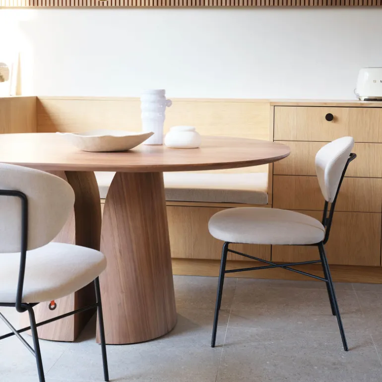 La chaise Toro allie parfaitement confort et design moderne. Elle est conçue pour offrir un confort supérieur grâce au rembourrage de l’assise et du dossier. Ces derniers sont tous les deux recouverts d’un tissu de haute qualité au choix. Les pieds filaires en métal ajoutent quant à eux une touche de finesse et d’élégance à l’ensemble et les nombreux coloris disponibles lui permettent de s’intégrer parfaitement dans votre décoration d’intérieur. La chaise Toro a été pensée jusqu’au moindre détail. Pour preuve, il n’y a aucune vis apparente au niveau de la fixation du dossier, contrairement à la plupart des assises de ce type. Une poignée discrète est également intégrée au dossier pour une manipulation plus aisée, ajoutant une touche pratique sans compromettre l’esthétique épurée de la chaise. Signée par le designer de la marque belge Mobitec Pierre Wegnez, elle sera un bel atout dans toutes les décorations d’intérieur.
