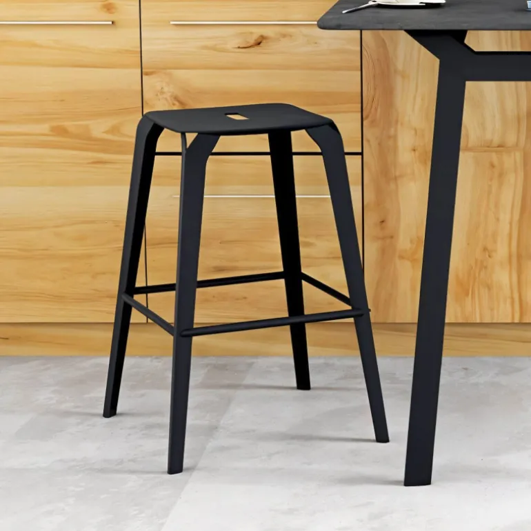 Ce tabouret snack de conception française est entièrement composé d’une tôle en acier qui a été découpée au laser. Cette tôle a été poncée, brossée et vernie à la main afin d’apporter à chaque exemplaire une touche unique. Dès lors, chaque tabouret pourra comporter des traces de ponçage, de légères tâches ou bien encore une couleur finale légèrement différente en fonction des exemplaires. Ces caractéristiques vous charmeront sans aucun doute ! Sa hauteur de 65 cm permet à ce tabouret sans dossier d’être associé à des tables snack de 90 cm de haut. Petit plus, l’absence de dossier facilite le rangement du tabouret sous la table !