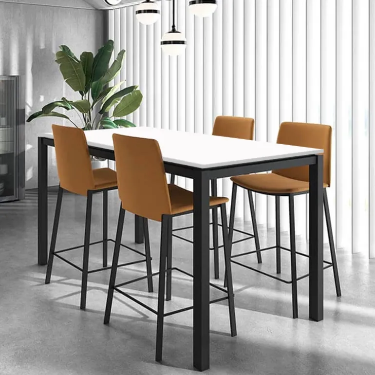 Renouez avec la sobriété tout en y apportant une touche de modernité avec la table Vicenza ! Elle associe un plateau en stratifié disponible en plusieurs teintes dans l’air du temps et un piétement métallique également disponible en plusieurs coloris. Le choix des matières et son caractère personnalisable en font un produit facile à entretenir et à adapter à une décoration intérieure. Associée à des tabourets snack de plus ou moins 65 cm de haut, cette jolie table de conception belge trouvera place aussi bien dans les cuisines que dans les salles à manger.