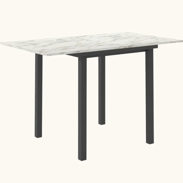 Découvrez la petite table snack Vienna, notre table hauteur snack qui allie élégance et fonctionnalité. Conçue pour s’intégrer parfaitement dans les cuisines et les petits espaces modernes, elle se distingue par son plateau extensible en stratifié ou mélaminé, permettant d’ajuster la surface selon vos besoins. La robustesse et la stabilité sont assurées par des pieds en métal, offrant une base solide et durable. Fabriquée avec soin en Belgique, la table Vienna reflète une qualité de fabrication exceptionnelle. Pour s’adapter à tous les goûts et à toutes les décorations, le plateau et les pieds sont disponibles en plusieurs couleurs, vous permettant de personnaliser cette pièce selon vos préférences. À noter que la finition MHA est texturée afin d’imiter à la perfection l’apparence du bois. Pour compléter le look, associez la petite table Vienna à des tabourets snack d’environ 65 cm de hauteur d’assise.