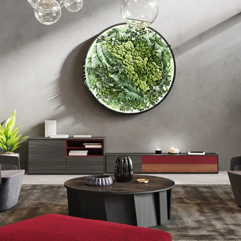 Et si vous apportiez un brin d’originalité à votre décoration de salon ? La table basse ronde Volute est le modèle parfait pour amener une touche moderne et tendance à votre pièce de vie. Sa forme ronde insufflera une atmosphère chaleureuse et conviviale dans votre séjour pour partager de bons moments autour d’apéritifs en famille ou entre amis. Son originalité réside dans son piètement assurément design, composé de lames de bois massif. Grâce à son plateau en céramique vous pourrez profiter de moments de convivialité sans craindre d’abîmer votre table basse puisque cette matière est très solide mais aussi facile à vivre. À vous de créer la table basse qui s’adaptera parfaitement dans votre salon en sélectionnant la teinte du bois, de la céramique mais aussi les dimensions du plateau !