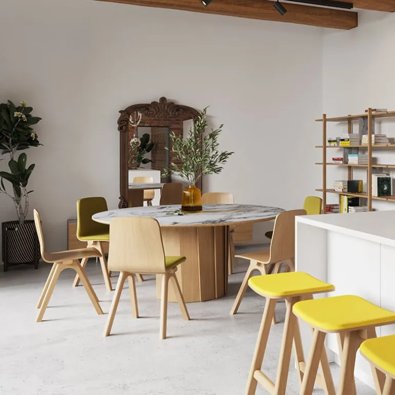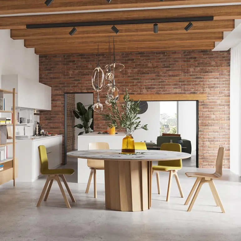La table de designer Volute imaginée par Pierre Dubourg n’attend plus que de trouver sa place dans votre salle à manger. On adore son piètement original composé de lames de bois massif qui affiche un look absolument unique. En plus de cela, le pied central est hautement pratique puisqu’il permet de ne pas encombrer l’espace ! Conçue au Portugal par la marque française Dasras, cette table renferme un vrai savoir-faire et une qualité indéniable. Son petit plus vient du mariage du bois et de la céramique qui permet d’avoir un modèle véritablement moderne et dans l’air du temps. Au-delà du style, la céramique est une matière très facile à vivre qui simplifiera l’utilisation et l’entretien de votre table. Créez le produit de vos envies en définissant la teinte du bois, de la céramique et la dimension de votre choix parmi plusieurs possibilités !